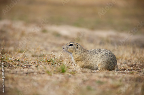 © Lucie, Obraz premium European ground squirrel on a field. Spermophilus citellus. Czech Republic