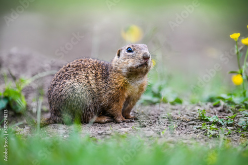 Fototapeta premium European ground squirrel on green meadow. Spermophilus citellus