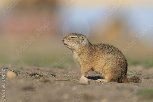 Naklejka premium european ground squirrel sitting in the gground. (Spermophilus citellus)....