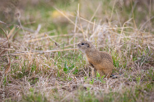 Naklejka premium European ground squirrel (Spermophilus citellus) in his natural environment