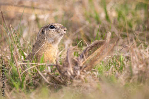 Fototapeta premium European ground squirrel (Spermophilus citellus) in his natural environment
