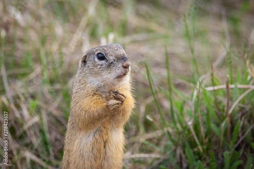 Fototapeta premium European ground squirrel (Spermophilus citellus) standing in his natural environment
