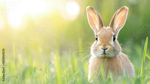 © niwat, Obraz premium European hare stands in the grass and looking at the camera