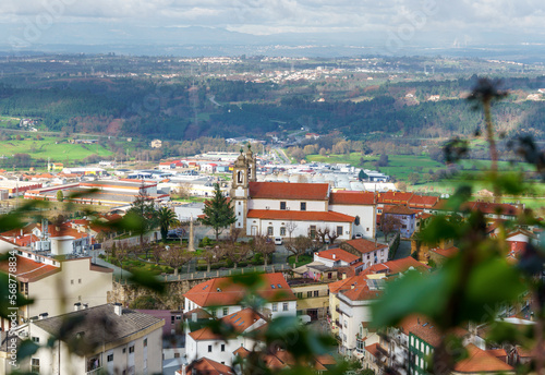 Fototapeta premium european hilltop village complete with church and town buildings