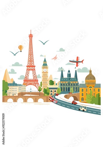 © Adobe Contributor, Fototapeta premium European Landmarks Illustration