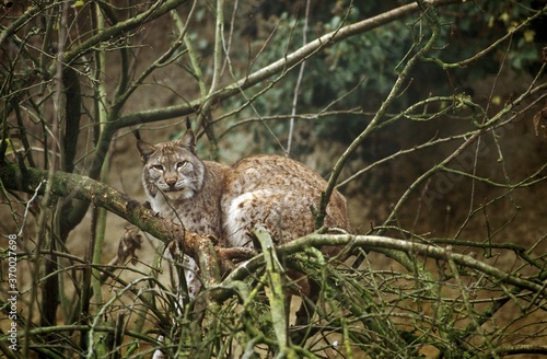 Naklejka premium European Lynx, felis lynx, Adult perched in Tree