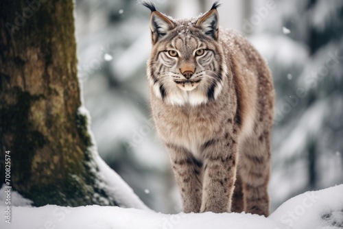 © kardaska, Obraz premium European lynx in a snowy forest in the winter.
