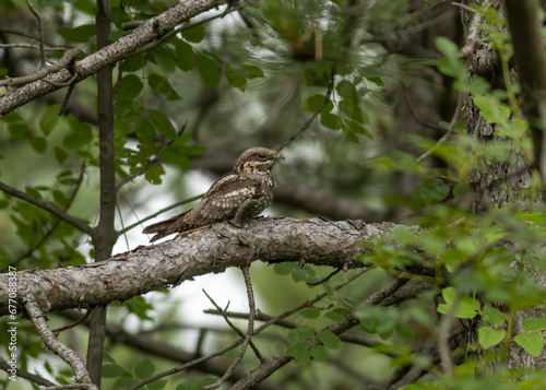 Fototapeta premium European Nightjar sitting on branch in the forest