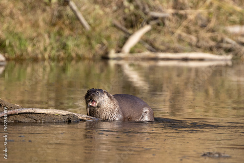 Fototapeta premium European otter on the Vistula River in Poland, eats fish, fish hunting