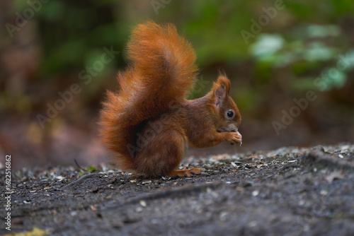 © Thorsten Spoerlein, Fototapeta premium European Red Squirrel Eating Sunflower Seeds on the Ground