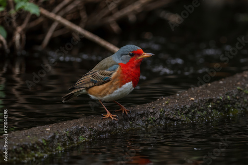 © Johan Wahyudi, Fototapeta premium European Robin bird in the side of river