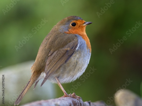 © Milan, Fototapeta premium European robin (Erithacus rubecula) stands on stick. Czech Republic. Europe.