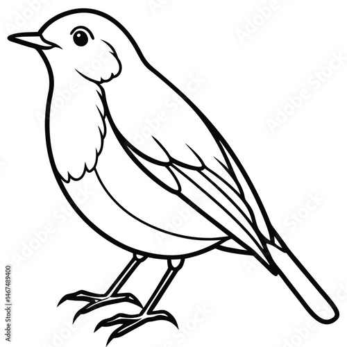 Obraz premium European Robin Line Art Elegant Bird Illustration for Backgrounds