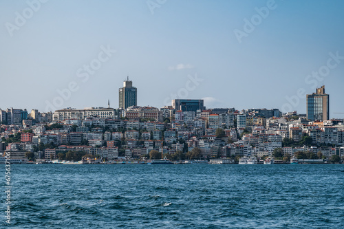 Naklejka premium European shore of Istanbul. View of the modern city, the Bosphorus and the Besiktas district.