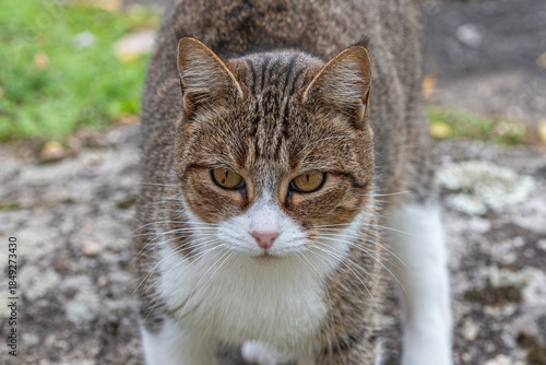 Fototapeta premium European tabby cat posing in nature