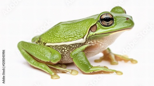 © CLOVER BACKGROUND, Obraz premium European Tree Frog in Side View with Vibrant Green Coloration