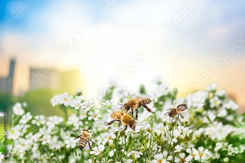 © BillionPhotos.com, Fototapeta premium European wild Honey Bee on fresh flowers