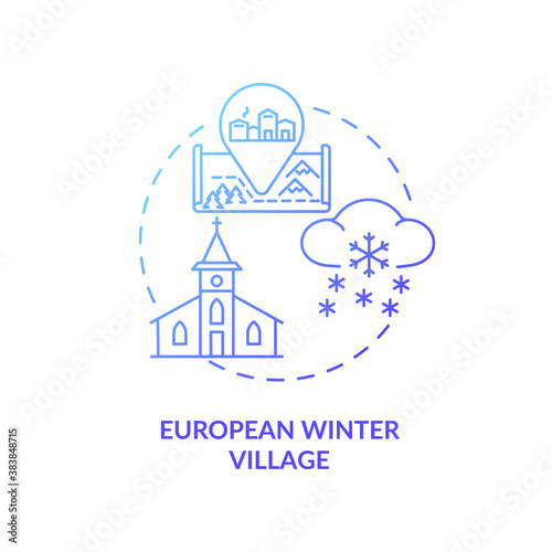 Fototapeta premium European winter village concept icon. Winter vacation destination idea thin...