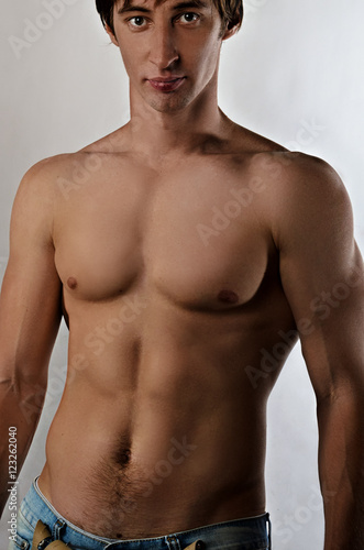 Fototapeta premium European young guy with a naked torso and body in the studio