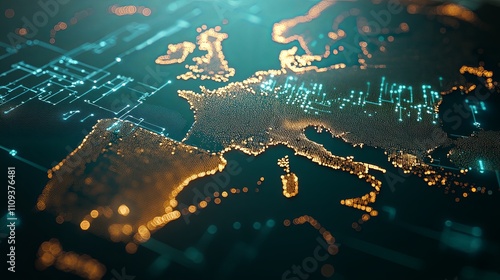 Fototapeta premium Europecentric Earth made of dots binary lines showcasing big data global...