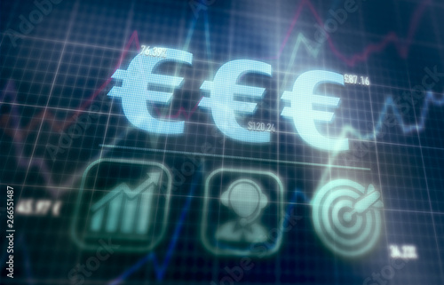© Duncan Andison, Obraz premium Euros concept on a blue dot matrix computer display.