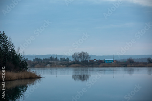© Lahodyuk, Obraz premium Evening at the sand mining company