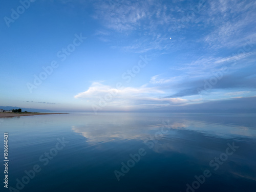Obraz premium Evening calm and smooth lake surface under soft clouds