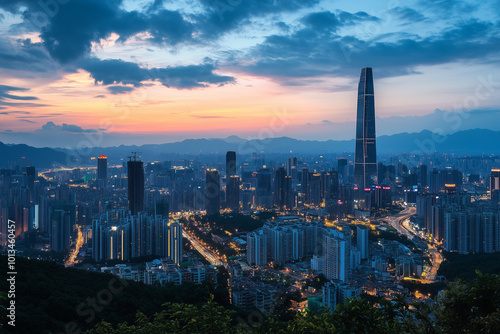 © song, Fototapeta premium Evening City Skyline at Dusk