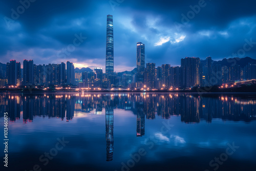 © song, Fototapeta premium Evening City Skyline at Dusk
