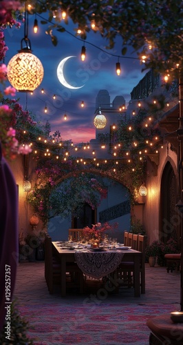 Fototapeta premium Evening dinner party in a Moroccan courtyard