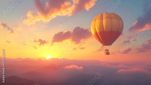 © Almaz, Fototapeta premium "Evening Glow: Colorful Balloon Drifting in the Sunset Sky"
