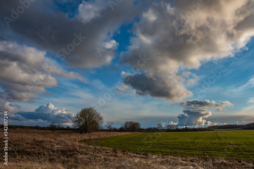 © Владимир Крышковец, Obraz premium evening landscape with rain Cumulus clouds