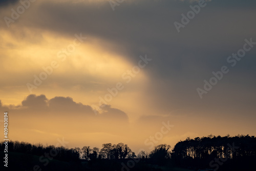 © Mark Hunter, Obraz premium Evening light and dramatic clouds at sunset in winter