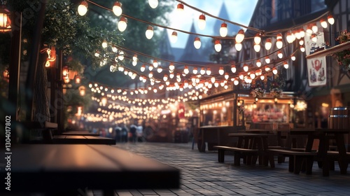 © underground, Fototapeta premium Evening market street, fair lights, medieval town