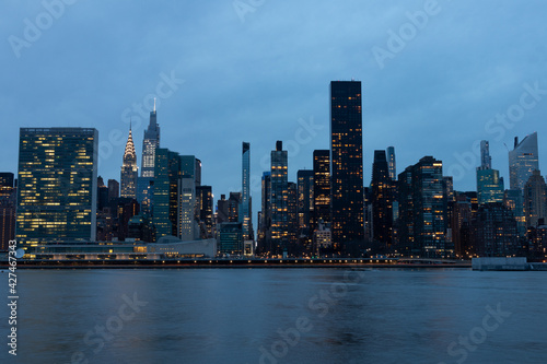 Fototapeta premium Evening Midtown Manhattan Skyline along the East River in New York City
