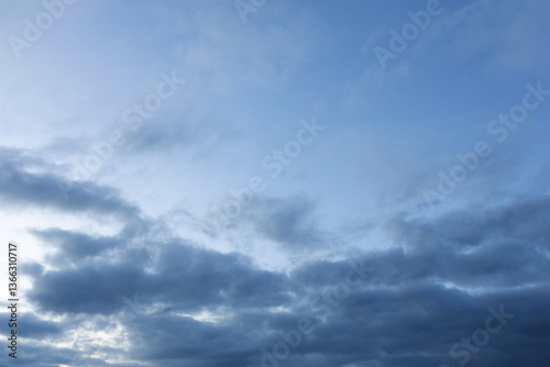 Fototapeta premium Evening moody blue sky with clouds and sunlight