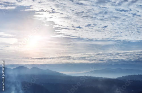 © murika, Obraz premium Evening mountain landscape. Beautiful panoramic mountain scene.
