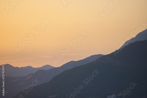 © pridannikov, Obraz premium Evening mountain range view at golden hour