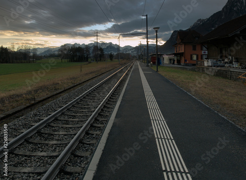 Naklejka premium Evening on platform at Rüthi SG, Swiss Rhine valley