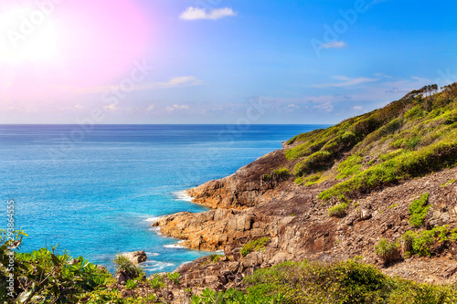 © Oleg, Fototapeta premium Evening over a high and steep seashore.