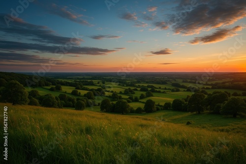© AkuAku, Fototapeta premium Evening panoramic view from a hilltop