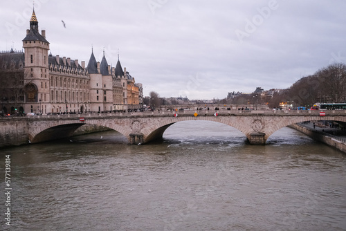 Fototapeta premium Evening photo of bridge over Seine river in Paris, France