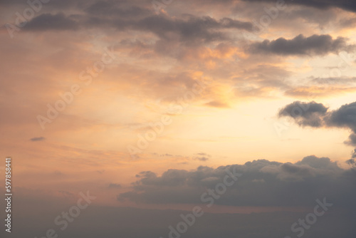 Fototapeta premium Evening pink yellow sky with golden clouds