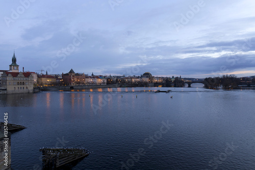 Fototapeta premium Evening Prague City above River Vltava after sunset from Charles Bridge,...