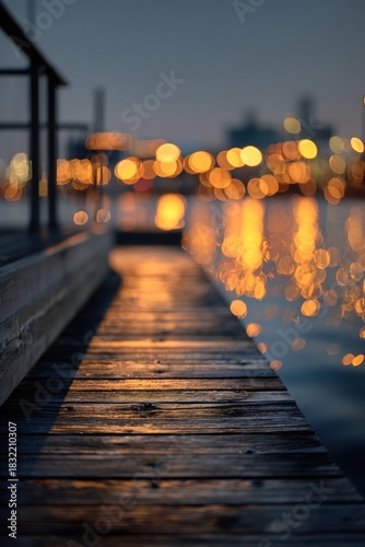 Fototapeta premium Evening Reflections - A Tranquil Walk Along the Dock at Twilight.