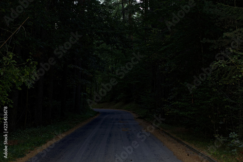 © Oleksii Pyrogov, Naklejka premium evening road in the autumn forest