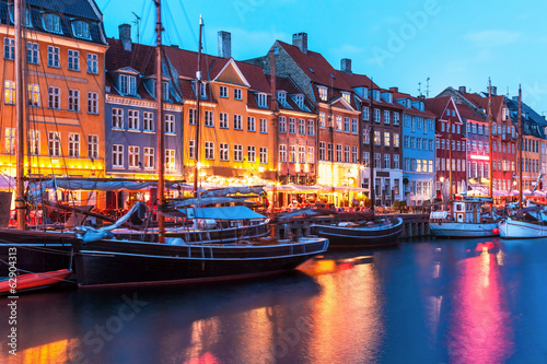 Naklejka premium Evening scenery of Nyhavn in Copenhagen, Denmark