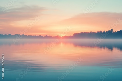 © Alina, Fototapeta premium Evening sky displays warm hues of orange and pink over tranquil waters at sunset