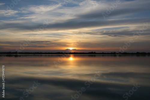 Naklejka premium Evening sky mirrored on river mouth