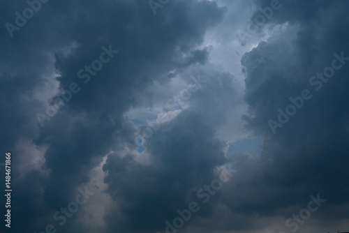 Obraz premium Evening sky with blue, white clouds.